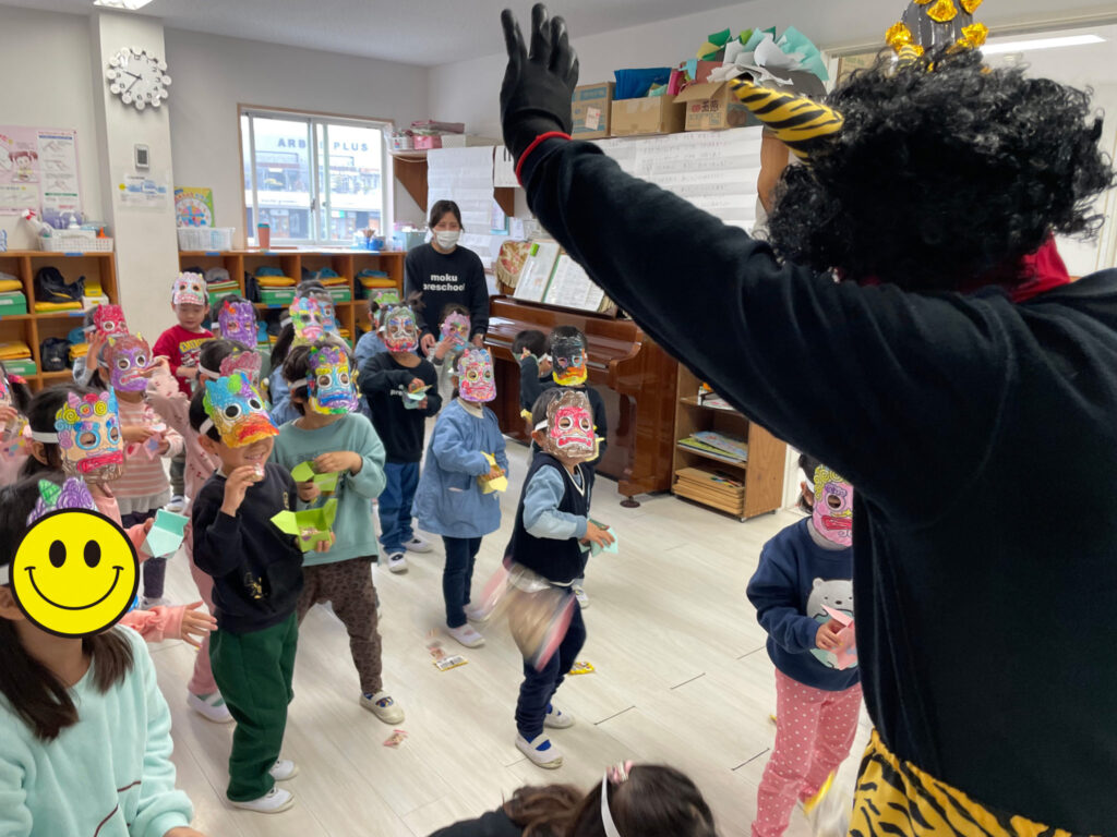 もく保育園 豆まき! 2024.02.09 2024.04.24 本園にもオニが来て豆まきをしました!! 大きくて強そうな鉄棒を持ったオニ。 ちょっぴり怖かったけど、オニのお面をかぶって、豆を投げてやっつけました😆 おには〜〜そと!!ふくは〜〜うち!! かるた大会! 次の記事
